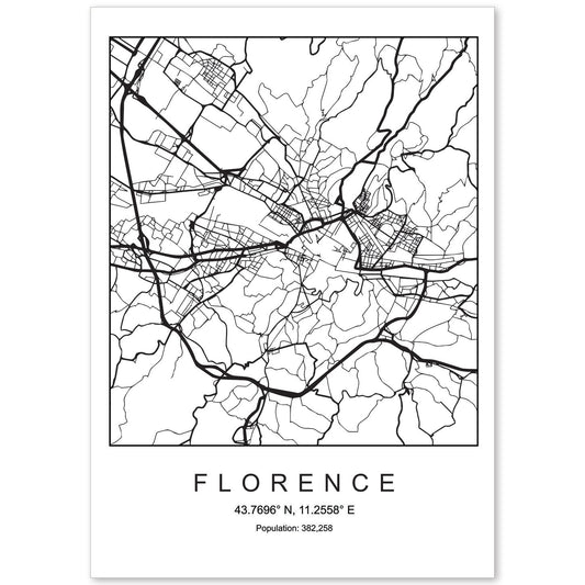 Lámina de mapa estilo nórdico de Florencia en blanco y negro