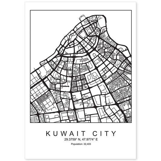Lámina de mapa estilo nórdico de Kuwait city en blanco y negro
