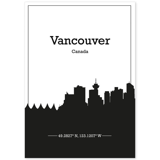 Lámina de mapa de Vancouver con Skyline en sombra negra