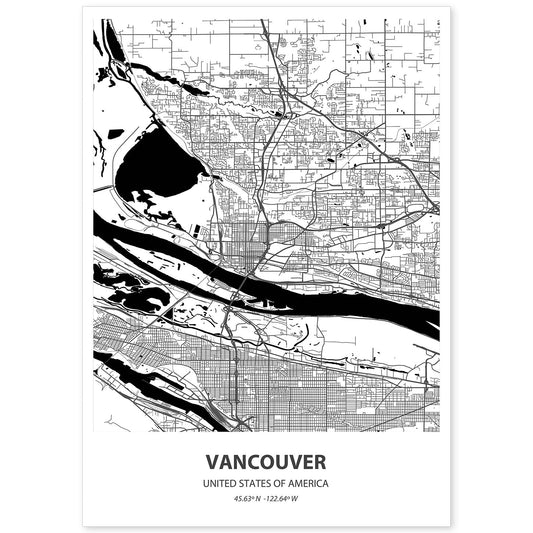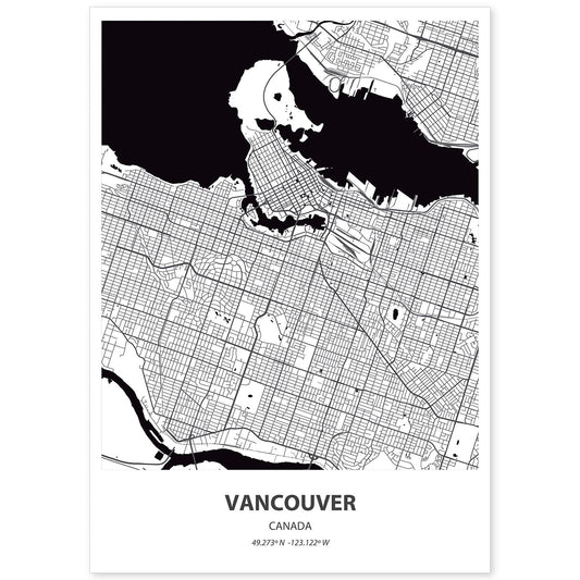 Lámina de Mapa de Vancouver en Color Negro