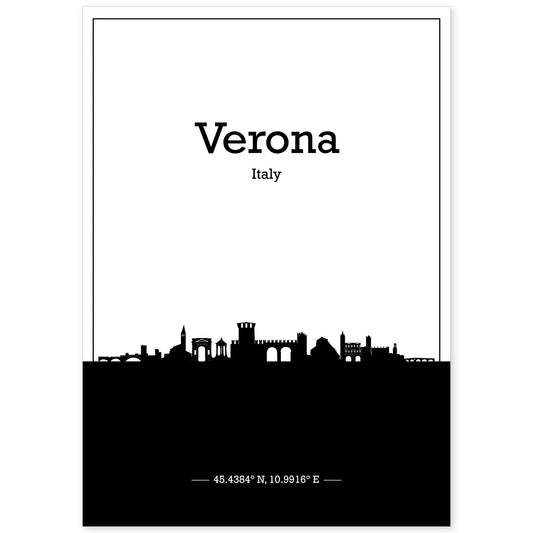 Lámina de Mapa de Verona, Italia con Skyline en Sombra Negra