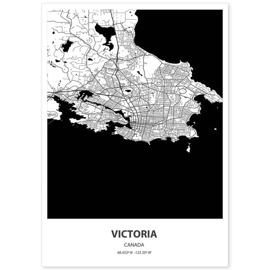 Lámina de Mapa de Victoria, Canada en Color Negro