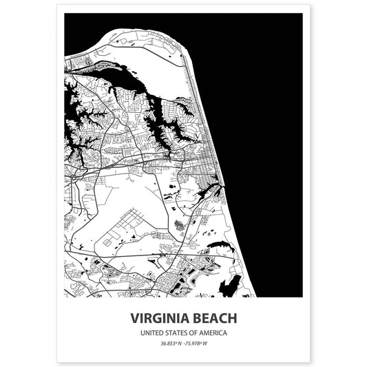 Lámina de Mapa de Virginia Beach, USA en Color Negro