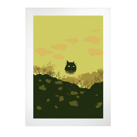 Póster de Gato Negro al estilo Sumi-E