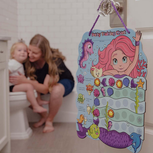 • Tabla de entrenamiento para ir al baño de sirena y 35 calcomanías reutilizables, tabla de calcomanías de entrenamiento para ir al baño, tabla de entrenamiento para ir al baño para niñas pequeñas,