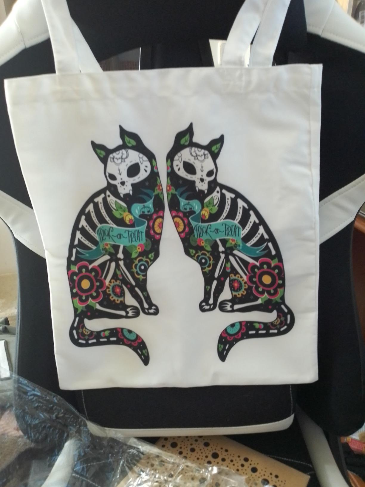 Bolsa Tote de tela | Diseño Calavera con flores | Bolso con asas largas multiusos, reutilizable y ecológico.