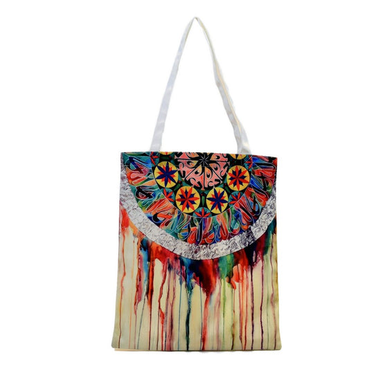 Bolsa Tote de tela | Diseño Geométrico Fluorescente | Tote Bag con asas largas multiusos, reutilizable y ecológica.
