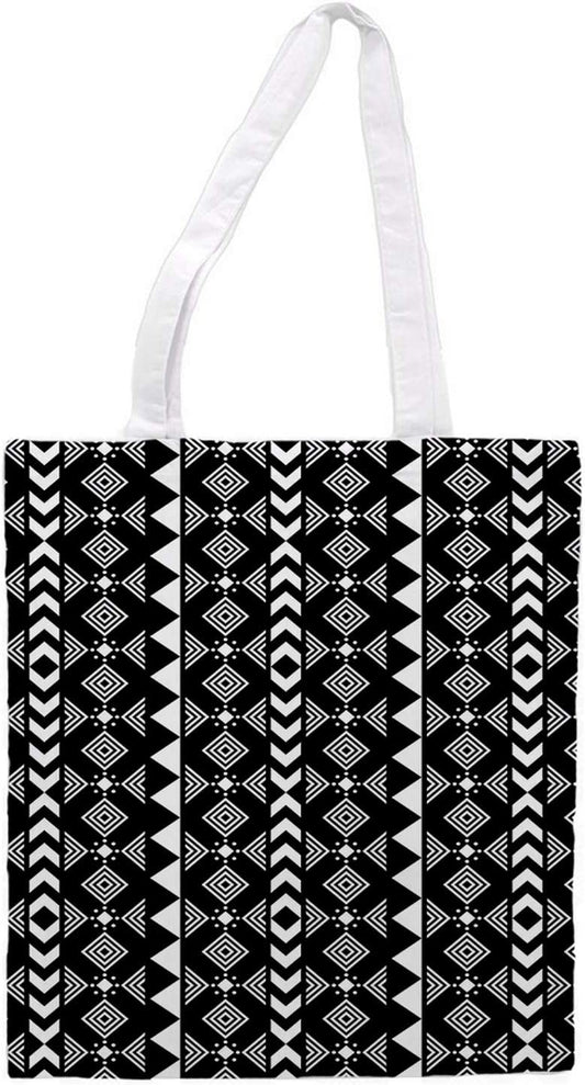 Bolsa Tote de tela | Diseño Geométrico Blanco y Negro | Bolso con asas largas multiusos, reutilizable y ecológico.