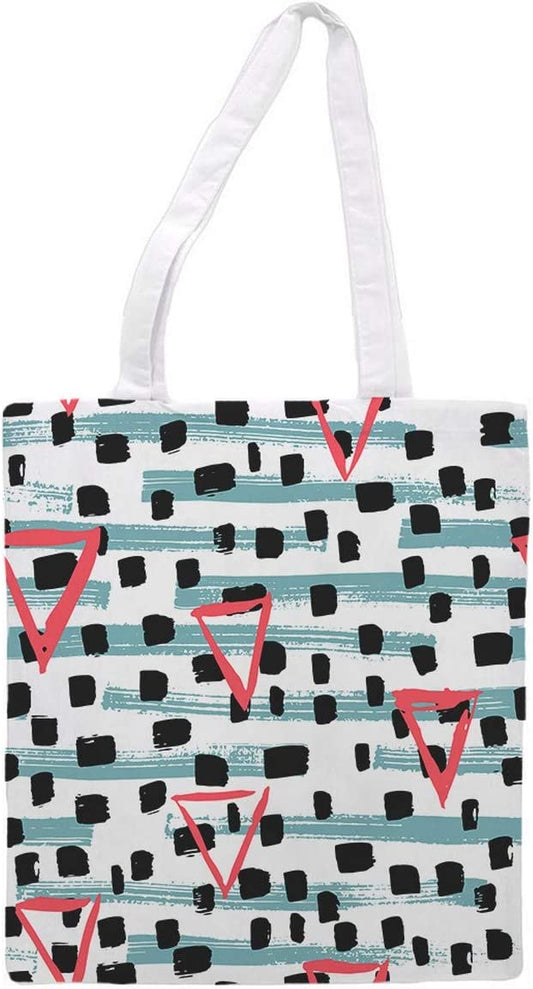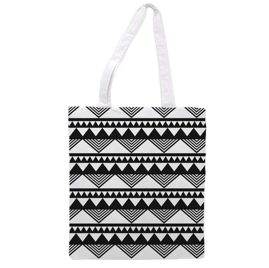 Bolsa Tote de tela | Diseño Geométrico Triángulos Blanco y Negro | Tote Bag con asas largas multiusos, reutilizable y ecológica.