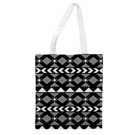 Bolsa Tote de tela | Diseño Geométrico Rombos Blanco y Negro | Tote Bag con asas largas multiusos, reutilizable y ecológica.