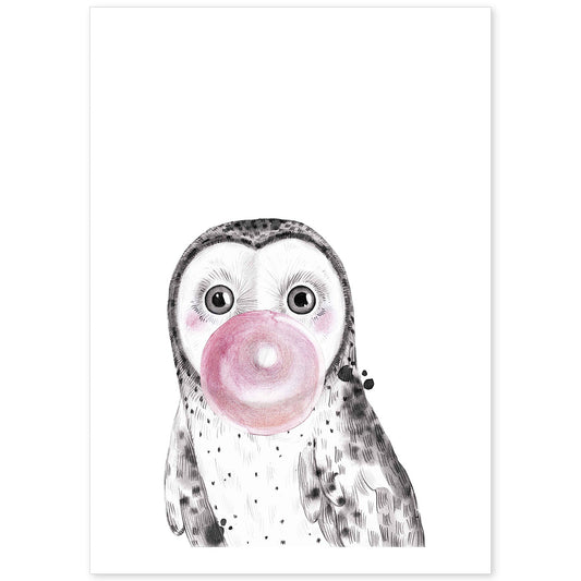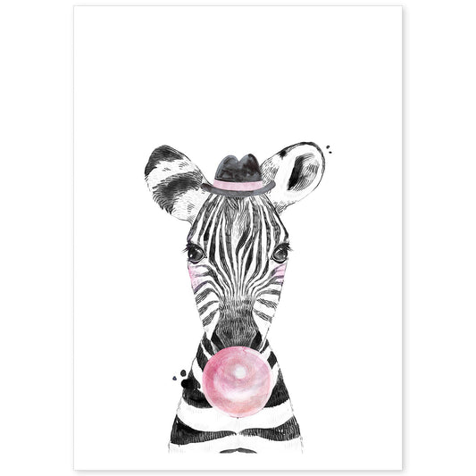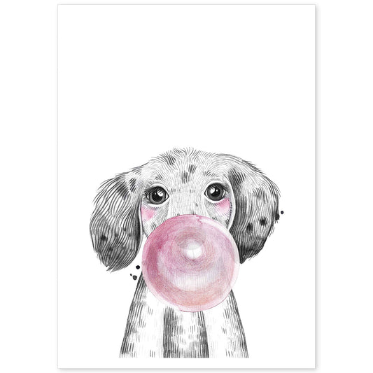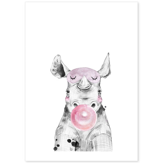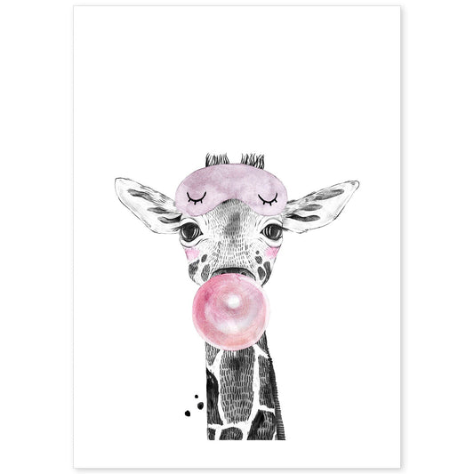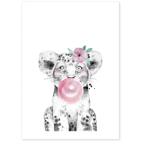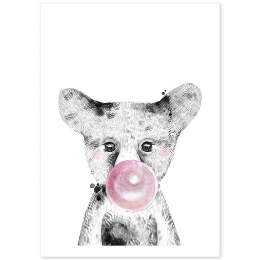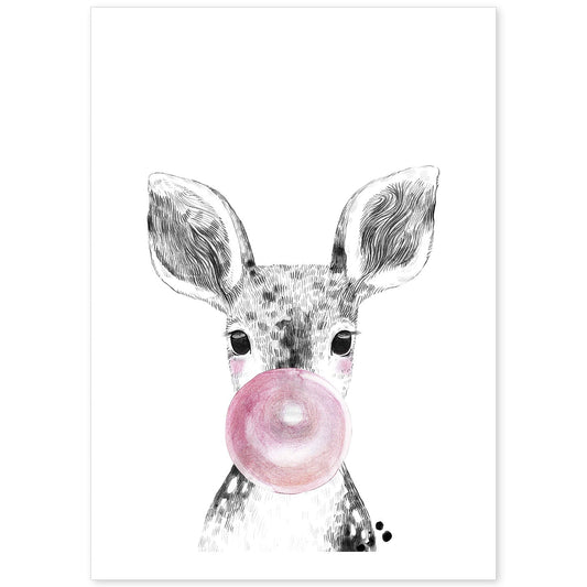 Poster Infantil de Ciervo Bebé con Chicle Rosa
