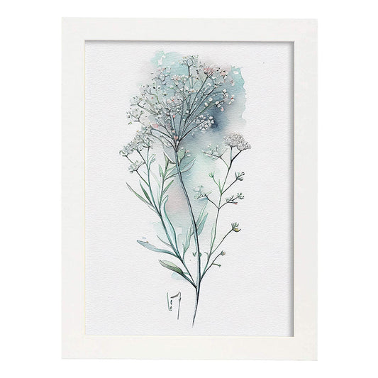 Lámina Nacnic de Acuarela Minimalista de Baby's Breath_3 para Dormitorio