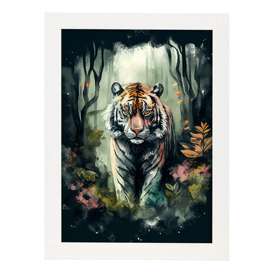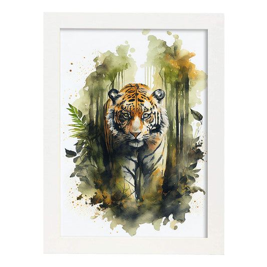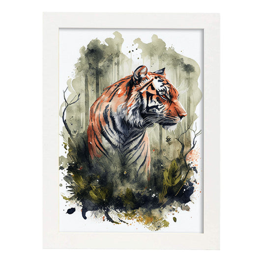 Lámina Acuarela de Tigre en el Bosque Nacnic