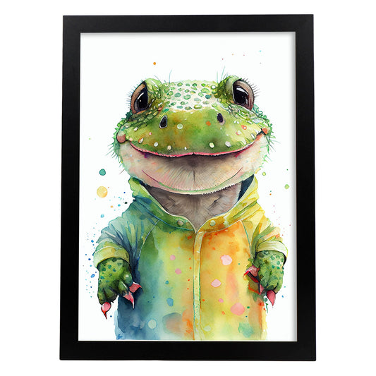 Lámina Nacnic de iguana bebé sonriendo sobre fondo blanco