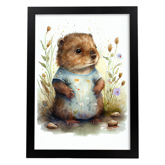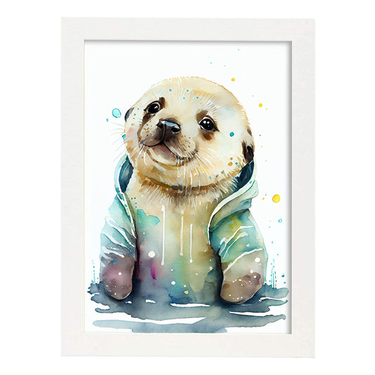 Lámina Nacnic de Bebé Erizo Sonriente en Fondo Blanco
