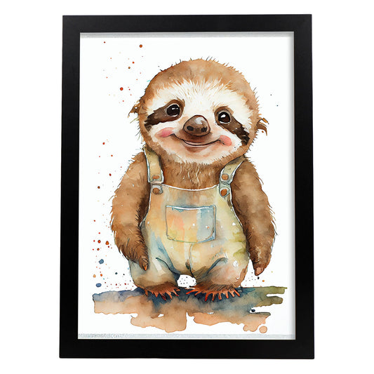 Lámina Nacnic de Bebé Perezoso Sonriente en Fondo Blanco