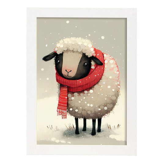Lámina de Cordero Bebé Nacnico Sonriendo en Blanco
