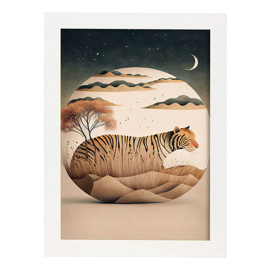 Lámina abstracta de Tigre Fluffy en estilo Precisionismo Nácnico