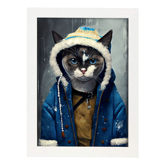 Nacnic Lámina de Gato con Ropa Humana en Raqueta de Nieve para Sala de Estar