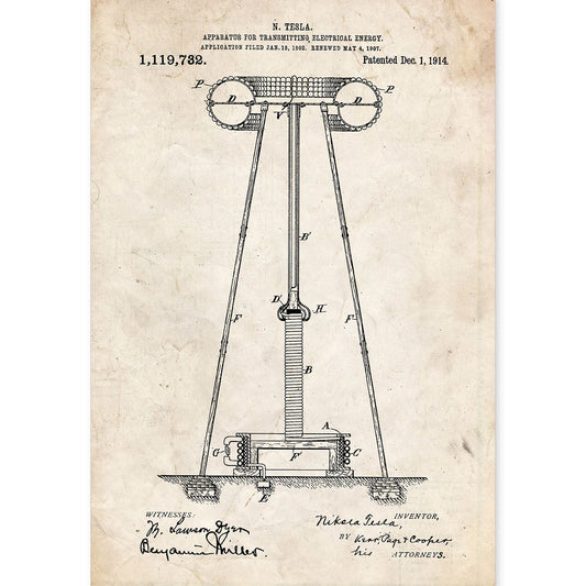 Pack de 4 Láminas Vintage de Patentes de Electricidad