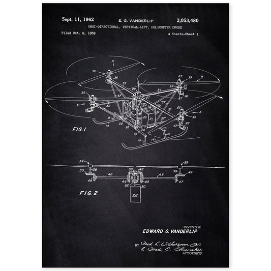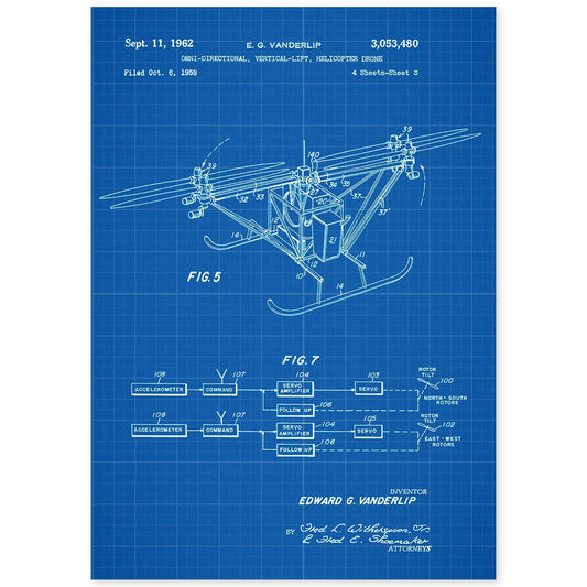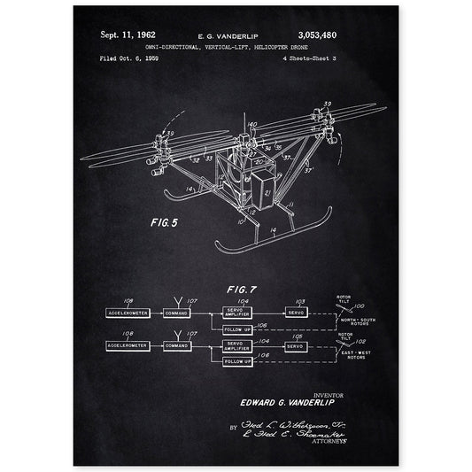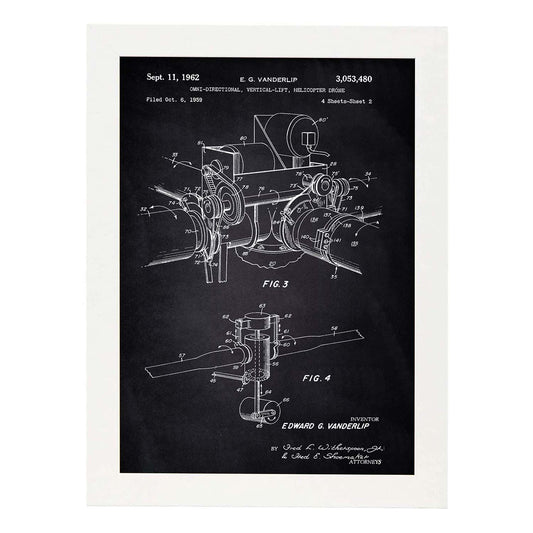 Lámina de Patente de Dron Helicóptero 3 con Diseño Antiguo