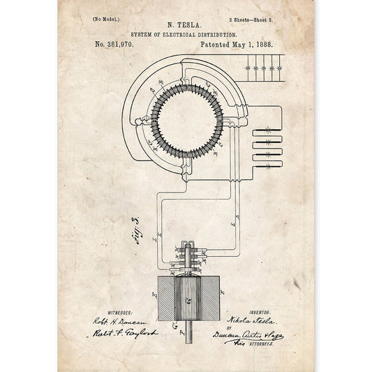 Lámina de Patente de Sistema de Distribución Eléctrica Antigua