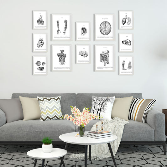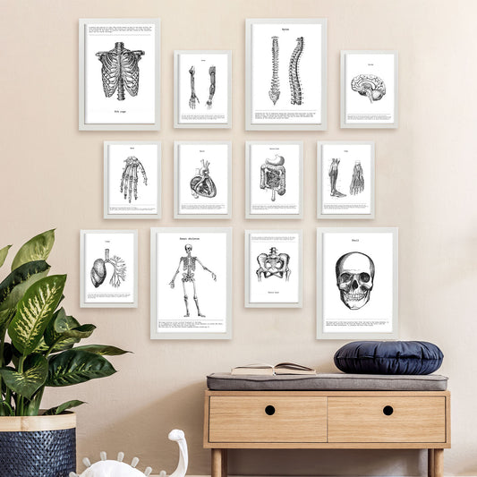 Ilustraciones decorativas de anatomía y medicina en estilo vintage. Decoración nórdica blanco y negro de biología y fisioterapia. Entra para ver y curiosear todas las láminas cuadros y posters que tenemos para decorar tus habitaciones del hogar de estilo nórdico.
