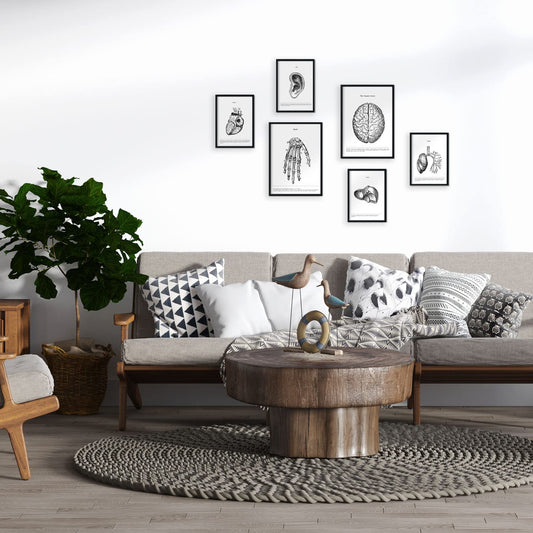 Ilustraciones decorativas de anatomía y medicina en estilo vintage. Decoración nórdica blanco y negro de biología y fisioterapia. Entra para ver y curiosear todas las láminas cuadros y posters que tenemos para decorar tus habitaciones del hogar de estilo nórdico.