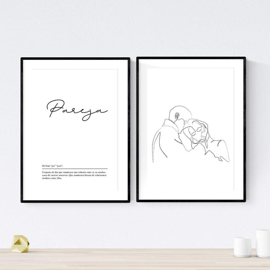 Set de 2 láminas estilo nórdico con líneas femeninas y beso de pareja