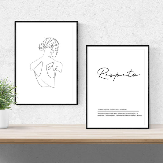 Set de 2 láminas estilo nórdico de líneas femeninas y palabras en Mujer respeto