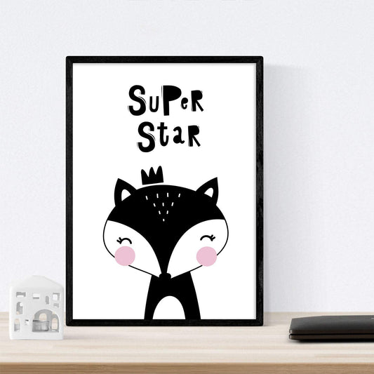 Set de 4 láminas de animales: Oso, Perezoso, Buho, Zorro