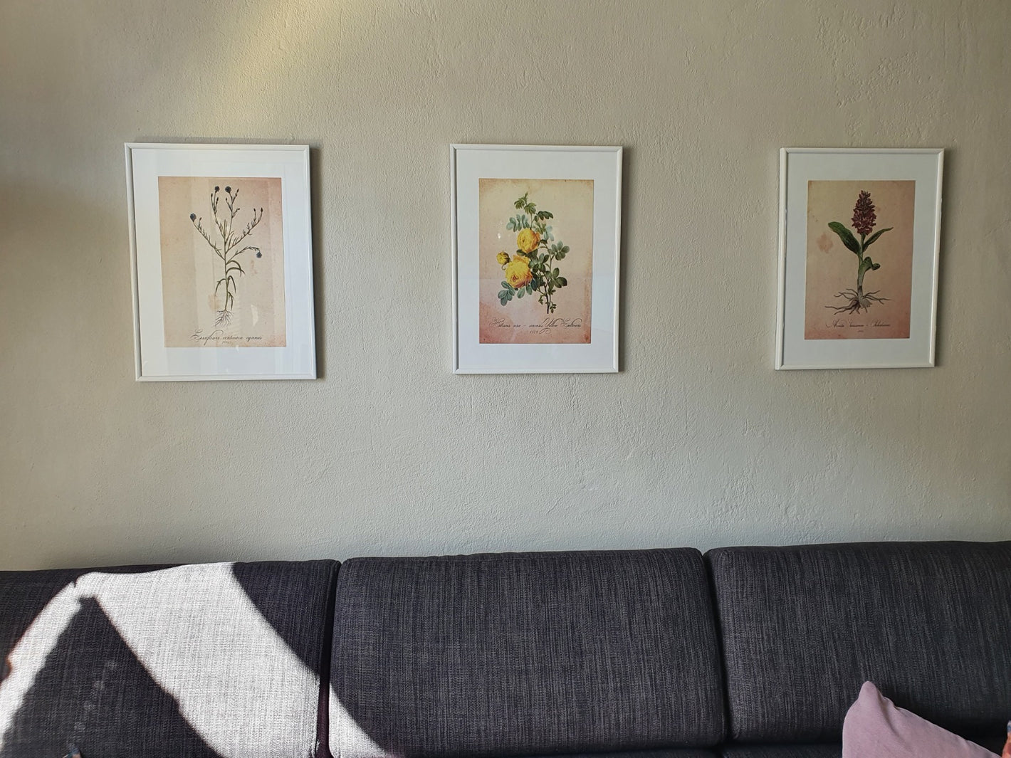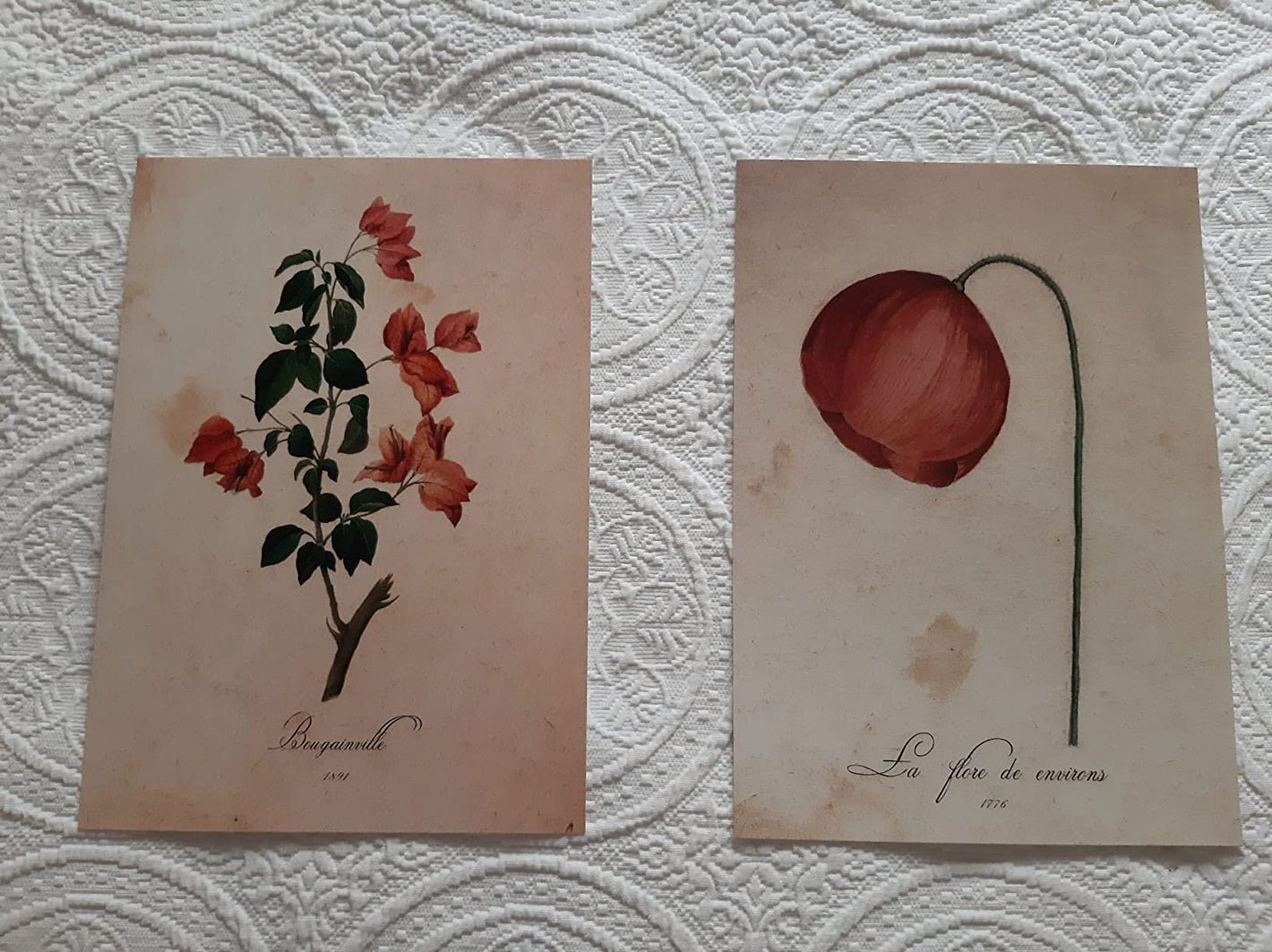 Set de 6 láminas botánicas estilo vintage con ilustraciones de flores antiguas en tonos suaves para decoración de salón, dormitorio o pasillo, 2 grandes y 4 medianos