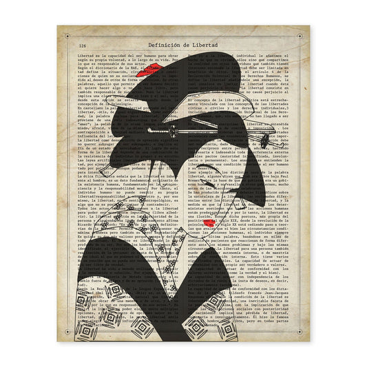 Póster de Geisha en Blanco y Negro con Diseños Japoneses