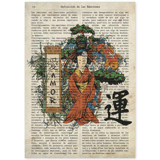 Pack de Cuatro Láminas Vintage Japonesas con Definiciones