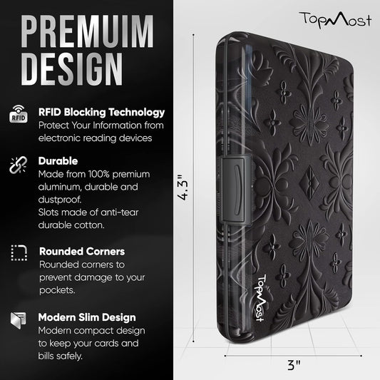 TopMost Cartera de Aluminio Bloqueo RFID para Hombres y Mujeres - Ranuras para 12 Tarjetas y Billetes