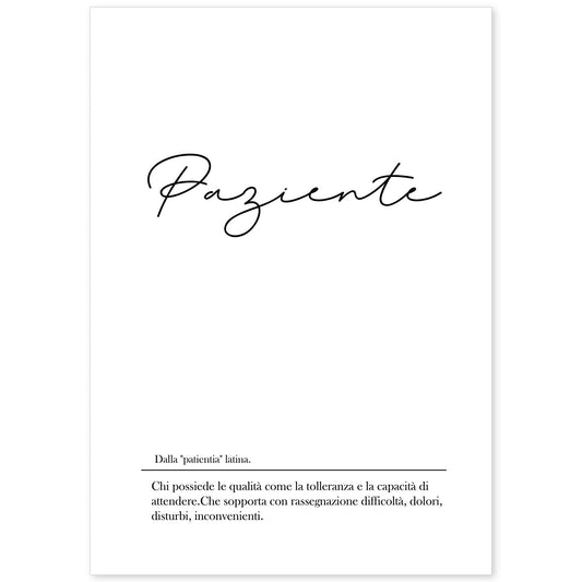 Lámina de Definición de Palabras 'Paziente' en Italiano