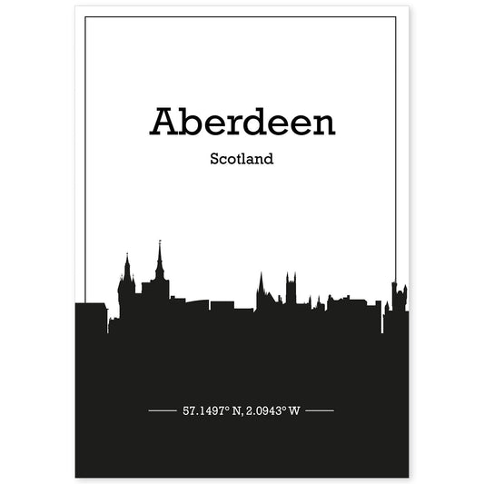 Lámina de Mapa de Aberdeen - Escocia con Skyline Negro