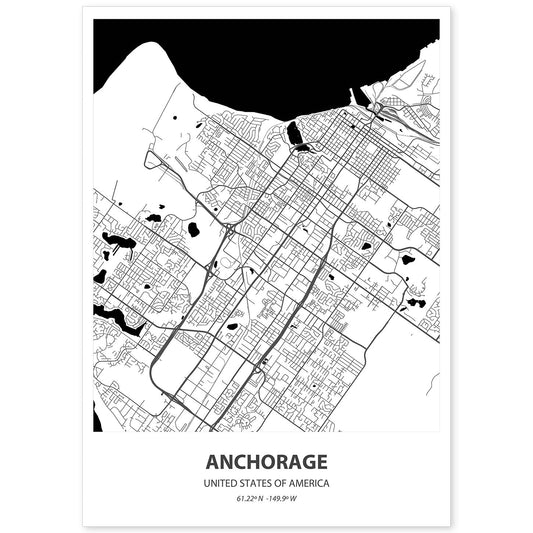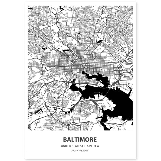 Lámina de Mapa de Baltimore, USA en Color Negro