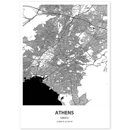 Lámina de Mapa de Athens, Grecia en Color Negro