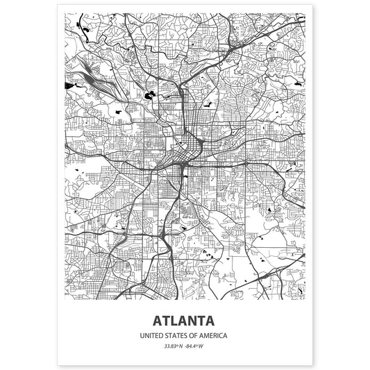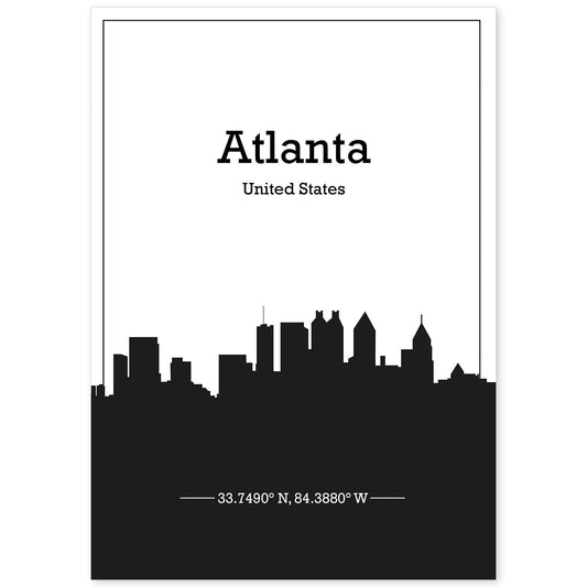 Lámina de Mapa de Atlanta con Skyline en Sombra Negra