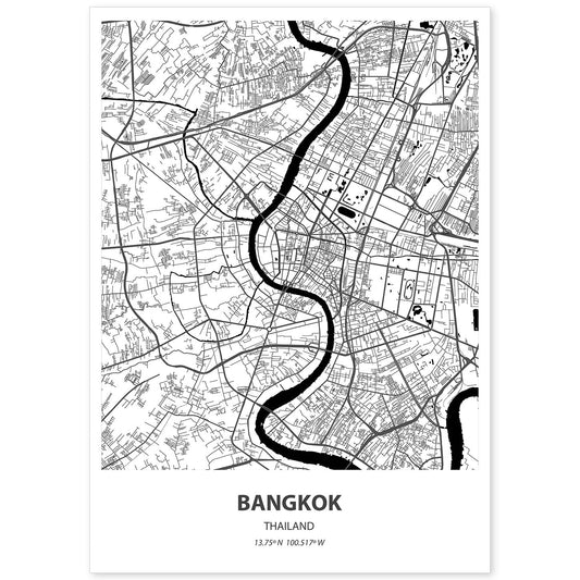 Lámina de Mapa de Bangkok, Tailandia en Negro