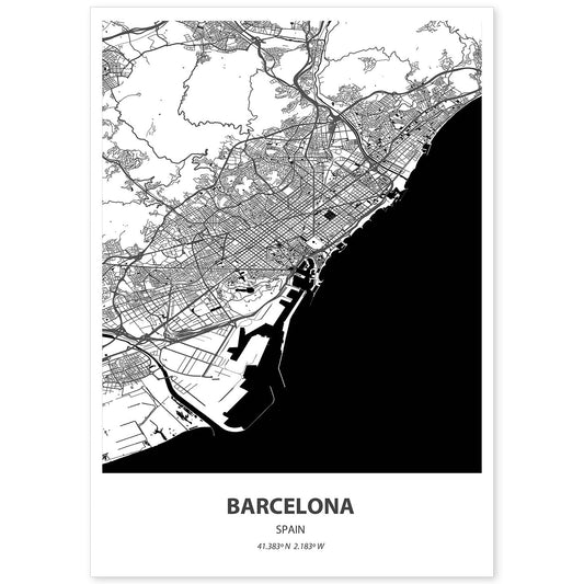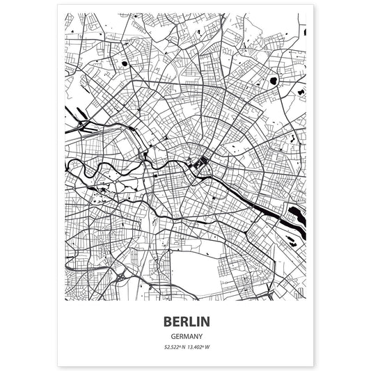 Lámina de Mapa de Berlin, Alemania en Color Negro
