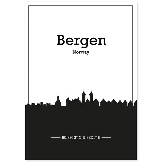 Lámina de Mapa de Bergen - Noruega con Skyline Sombreado