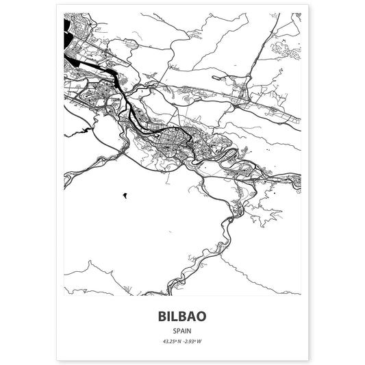Lámina de Mapa de Bordeaux, Francia en Color Negro