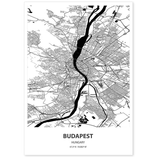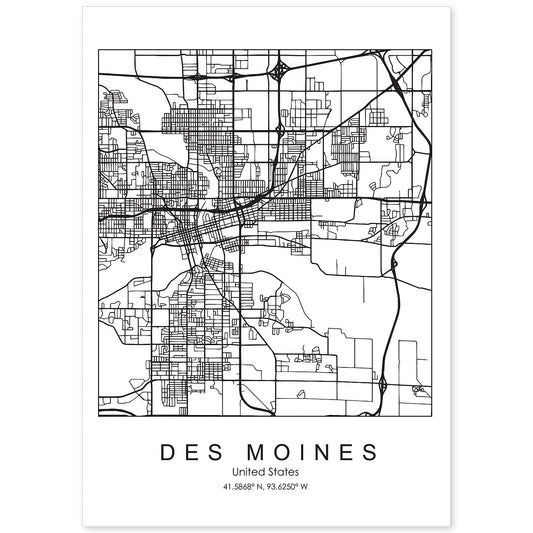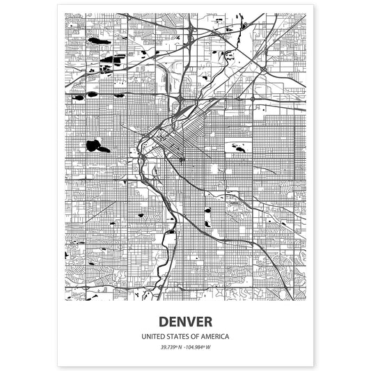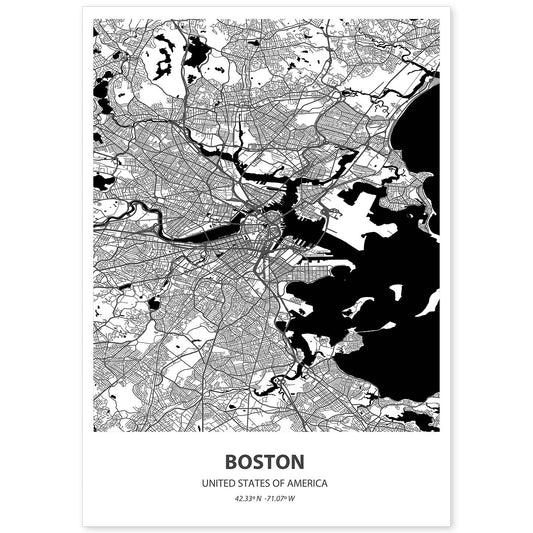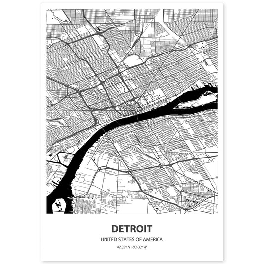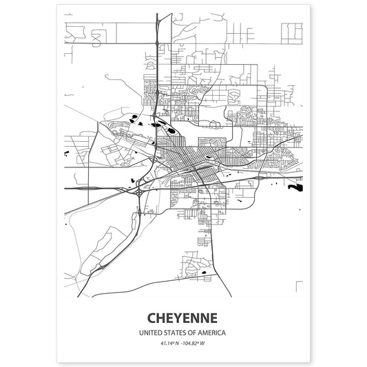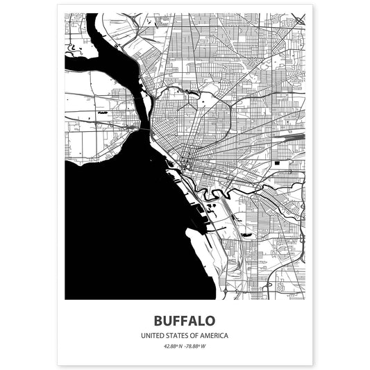 Lámina de Mapa de Buffalo, USA en Color Negro