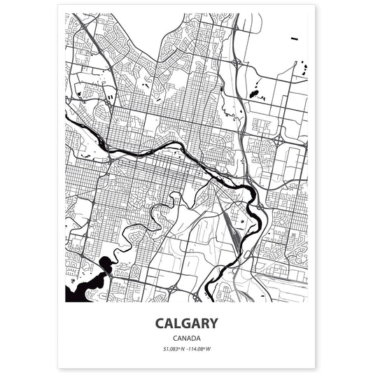 Lámina de Mapa de Calgary, Canada en Color Negro