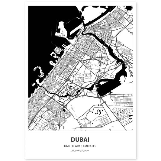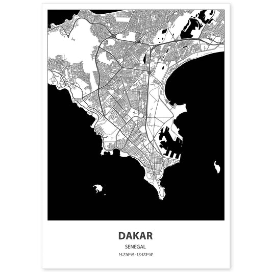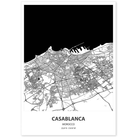 Lámina de Mapa de Casablanca Marruecos en Negro