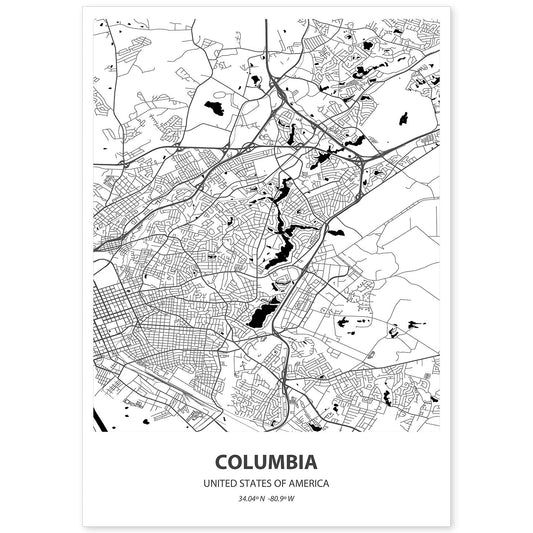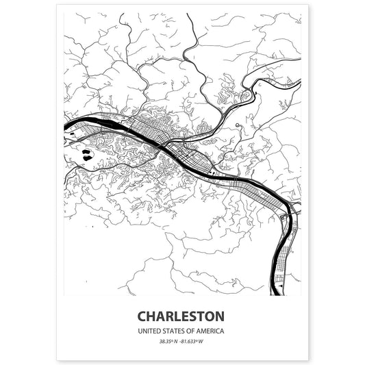 Lámina de Mapa de Charlotte, USA en Color Negro