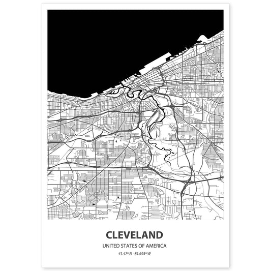 Lámina de Mapa de Cleveland, USA en Color Negro