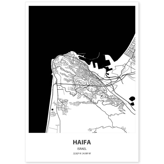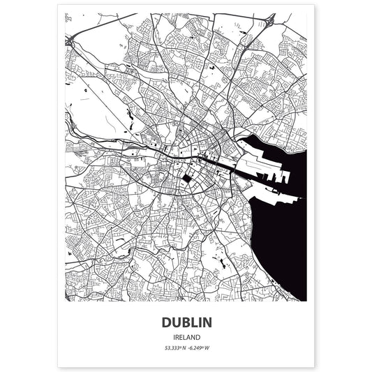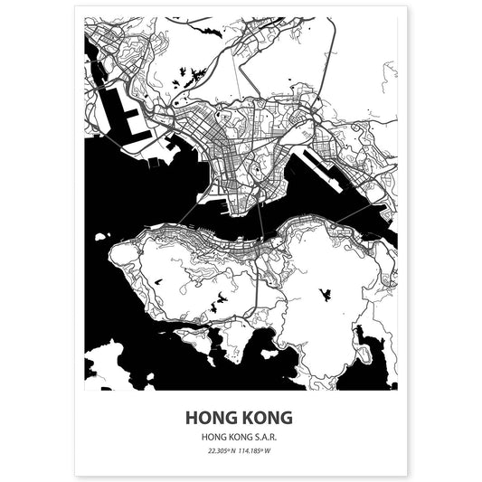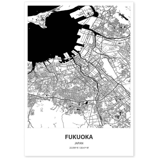Lámina de Mapa de Fukuoka, Japón en Color Negro